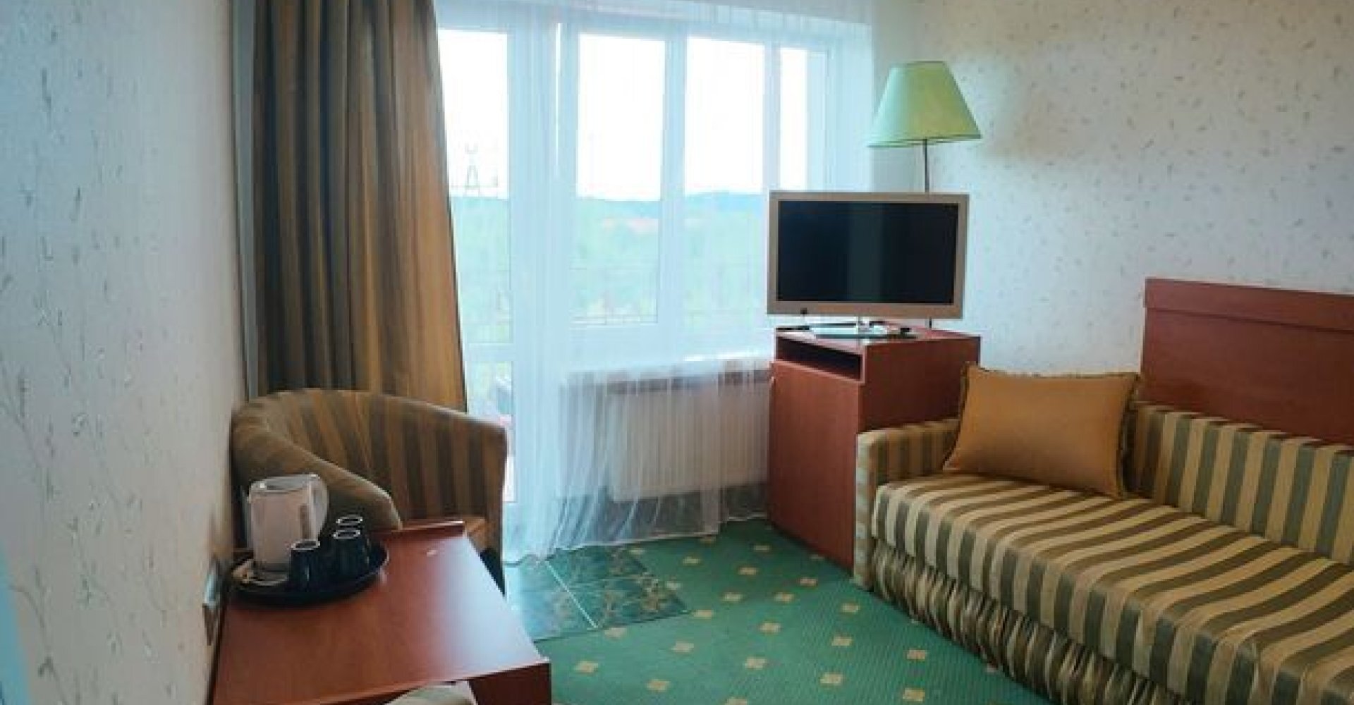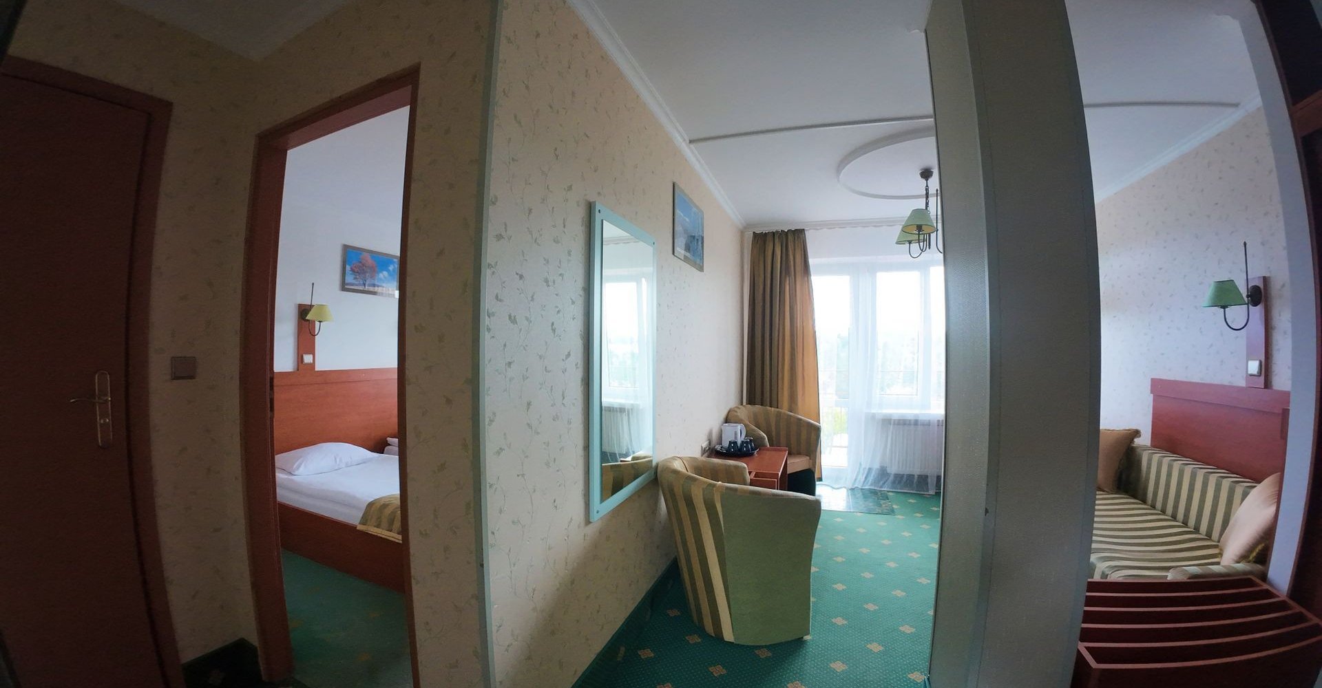 Pokoik z balkonem od strony jeziora i gór. Pokój składa się z salonu, gdzie mieści się rozkładana sofa dwuosobowa, natomiast w pokoju docelowym znajdują się dwa pojedyncze łóżka z możliwością połączenia.